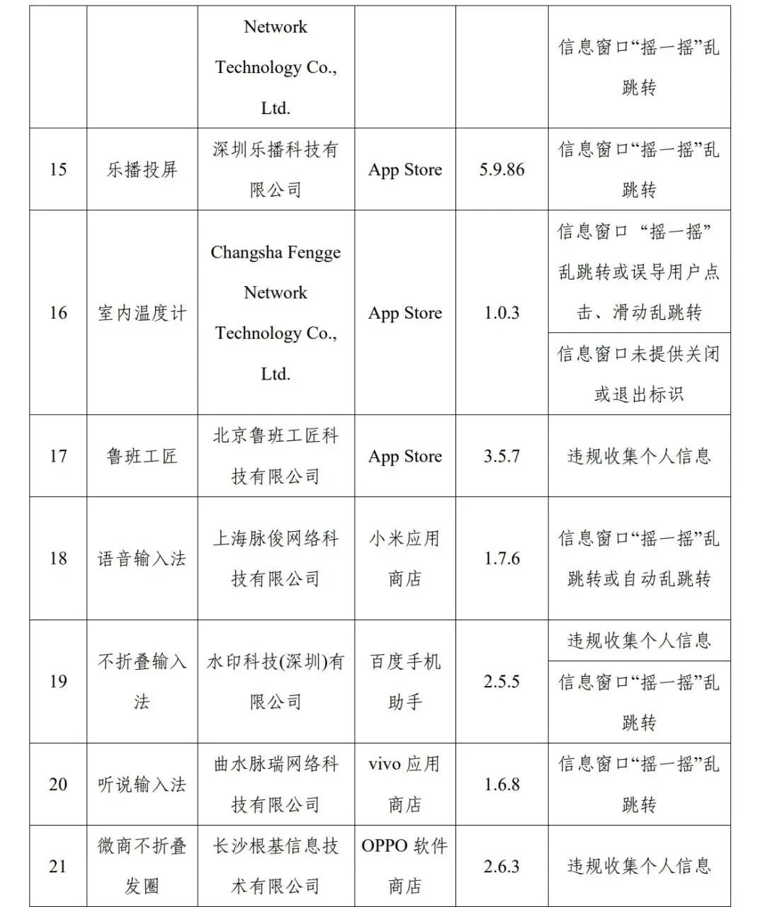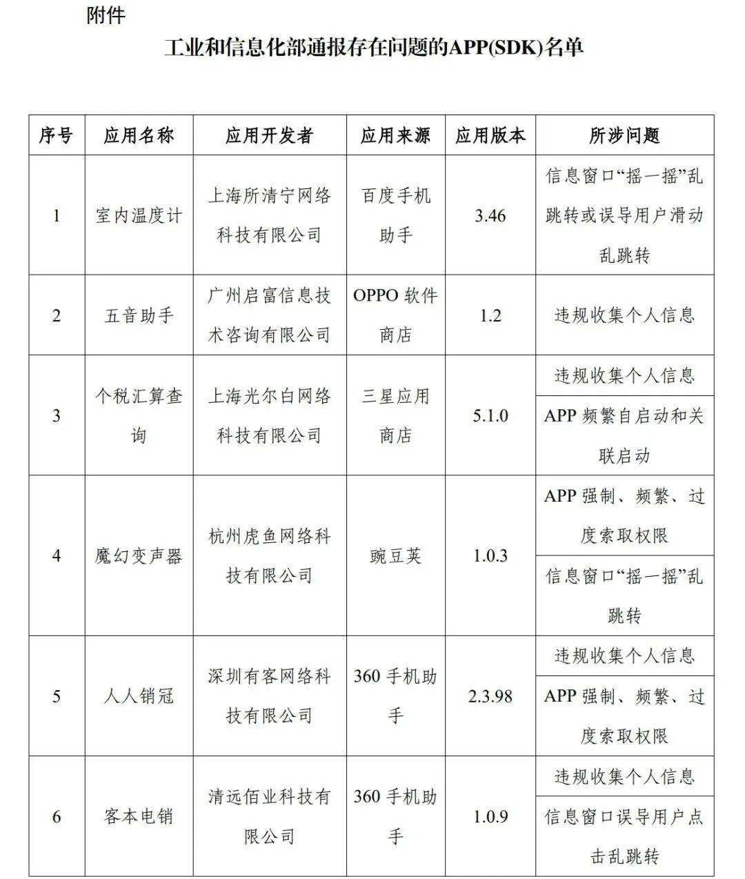 附件:工业和信息化部通报存在问题的APP(SDK)名单