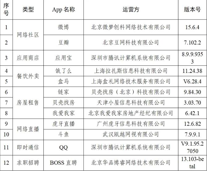 12款App运营方已在应用商店或者官网上架优化改进版本(名单及版本号附后),并承诺升级版本持续保持合规水平。现将App清单公布如下: