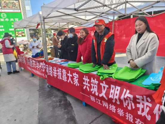 近日,云南省丽江玉龙县委网信办到白沙镇“当美空普”节庆现场开展网络举报和辟谣宣传活动。