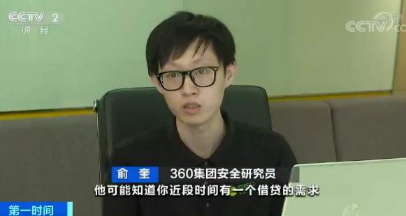 360集团安全研究员俞奎:他拿到你的通讯录,又拿到短信,他可能知道你近段时间有借贷需求,这个时候他就可能会把这些数据进行二次贩卖,比如卖给一些专门做诈骗的人员。