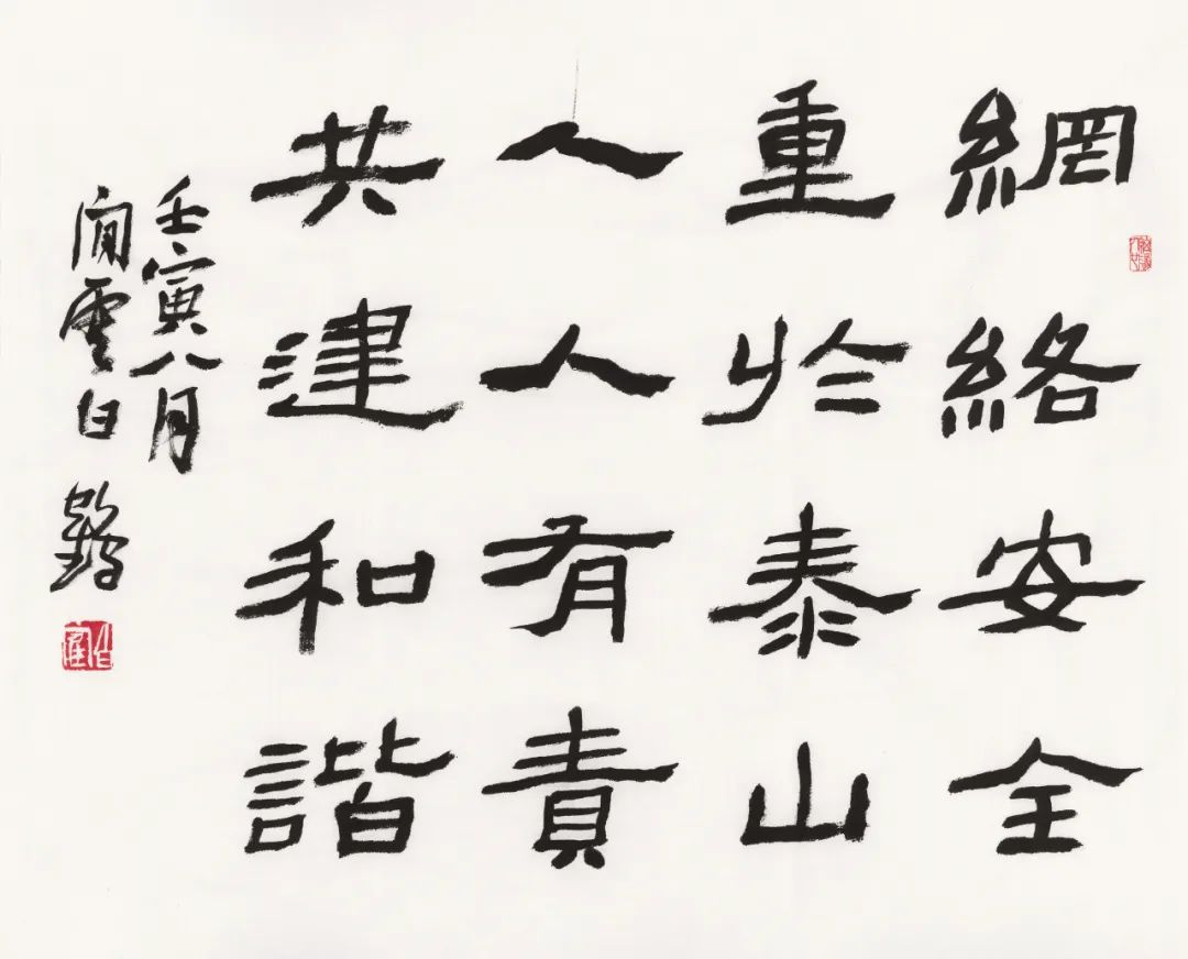 编者按:为贯彻落实习近平总书记在全国网络安全和信息化工作会议上的重要讲话精神,根据省委网信办和厅网络安全工作领导小组统一部署和要求,9月5日至11日开展“网络安全宣传周活动”。江苏省书法院通过召开网络安全专题学习会,张贴海报、发放安全手册、网络安全知识竞答等多种形式开展网络安全宣传。结合自身业务特点,我院策划了本次“网络安全书法作品展”,以书法艺术的形式普及网络安全知识,强化网络安全意识,让网络安全深入人心。