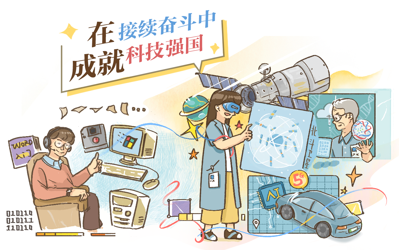 在守正创新中追逐无垠瀚海。“天眼”望星河、“蛟龙”探深海、“高铁”驰神州、“5G”联天下、“C919”翱翔蓝天……我国广大科技工作者用一个个骄人的成果,书写出创新中国的耀眼篇章。前赴后继,开拓奋进。习近平总书记5月23日给参与“澳门科学一号”卫星研制的澳门科技大学师生代表回信,高度鼓舞了投身国家科技事业的青年工作者的信心。如果说科研创新是一片汪洋大海,我们有扬帆起航的巨轮,操盘稳舵的舵手,也有胸怀深蓝,志在超越的新生力量。人工智能、无人驾驶是80后、90后写在作文中对未来的畅想,如今已一一照进现实;改编自刘慈欣科幻小说的电影《流浪地球2》,展现的诸多恢弘精妙的场景,背后是徐工等大国重器的鼎力支持。这些前人“筑梦”、后人“圆梦”的累累硕果,烙印出无数科技工作者征途无疆的绮梦。