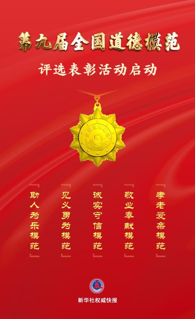 中央宣传部、中央精神文明建设办公室等6部门近日启动第九届全国道德模范评选表彰。据悉,第九届全国道德模范分为“助人为乐模范”“见义勇为模范”“诚实守信模范”“敬业奉献模范”“孝老爱亲模范”5个类别,通过群众推荐、遴选审核、公示宣传、投票评选等步骤评选产生。