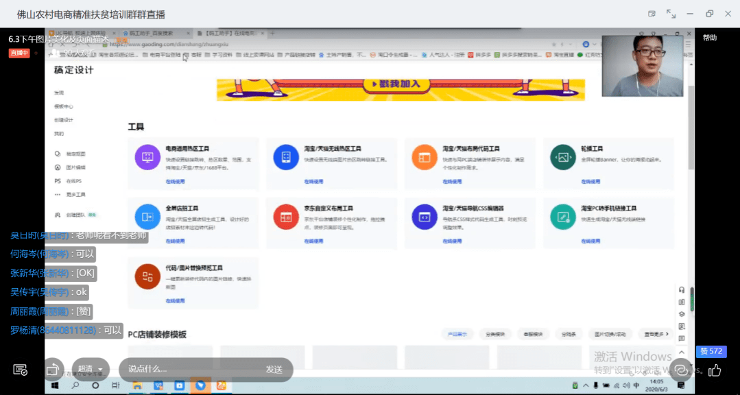 5月15日,在湘西十八洞村,驻村扶贫工作队队长麻辉煌(左)与返乡大学生施林娇一起通过网络直播推销土特产。陈思汗 摄