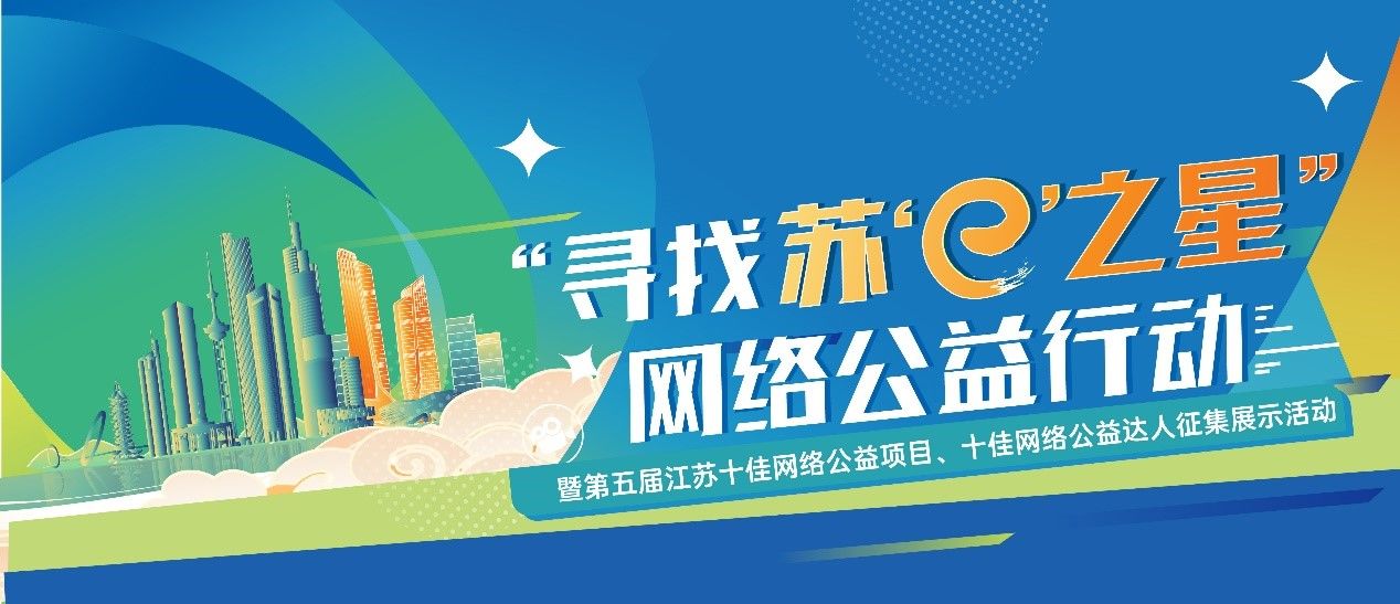 为贯彻落实习近平总书记关于网络强国的重要思想和关于精神文明建设的重要论述,扎实推进全省《关于加强网络文明建设的意见》,持续实施“情暖江苏e起来”网络公益工程,全力打造江苏省网络公益事业特色品牌,“寻找苏‘e’之星”网络公益行动暨第五届江苏十佳网络公益项目、十佳网络公益达人征集展示活动正式开启。