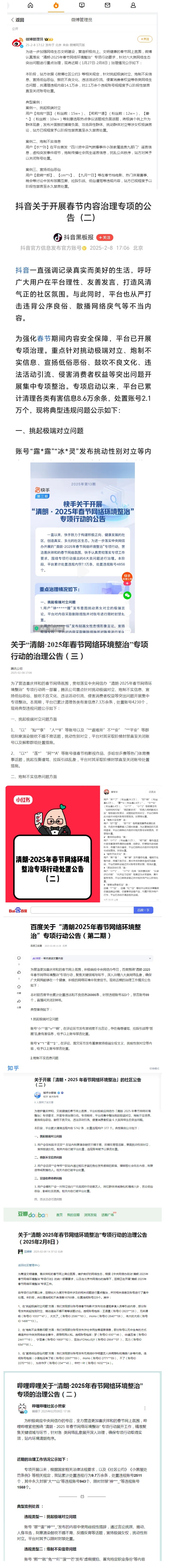多平台发布“清朗·2025年春节网络环境整治”专项行动治理成效和典型案例