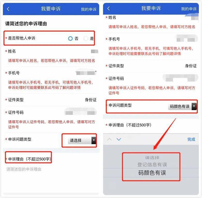 第二步:填写相关申诉信息,可自己申诉,也可帮他人申诉。在选择申诉问题类型,填写申诉理由,并上传凭证后,点击提交。