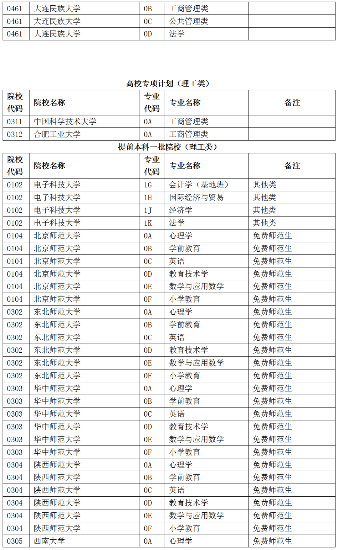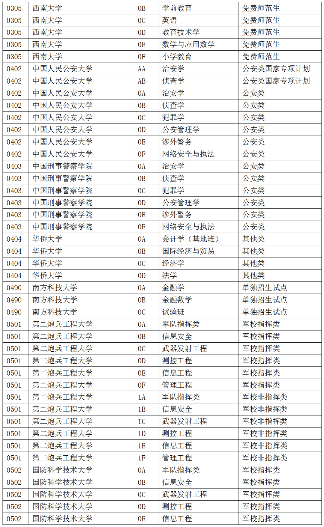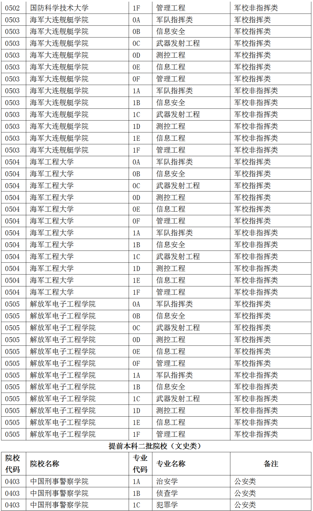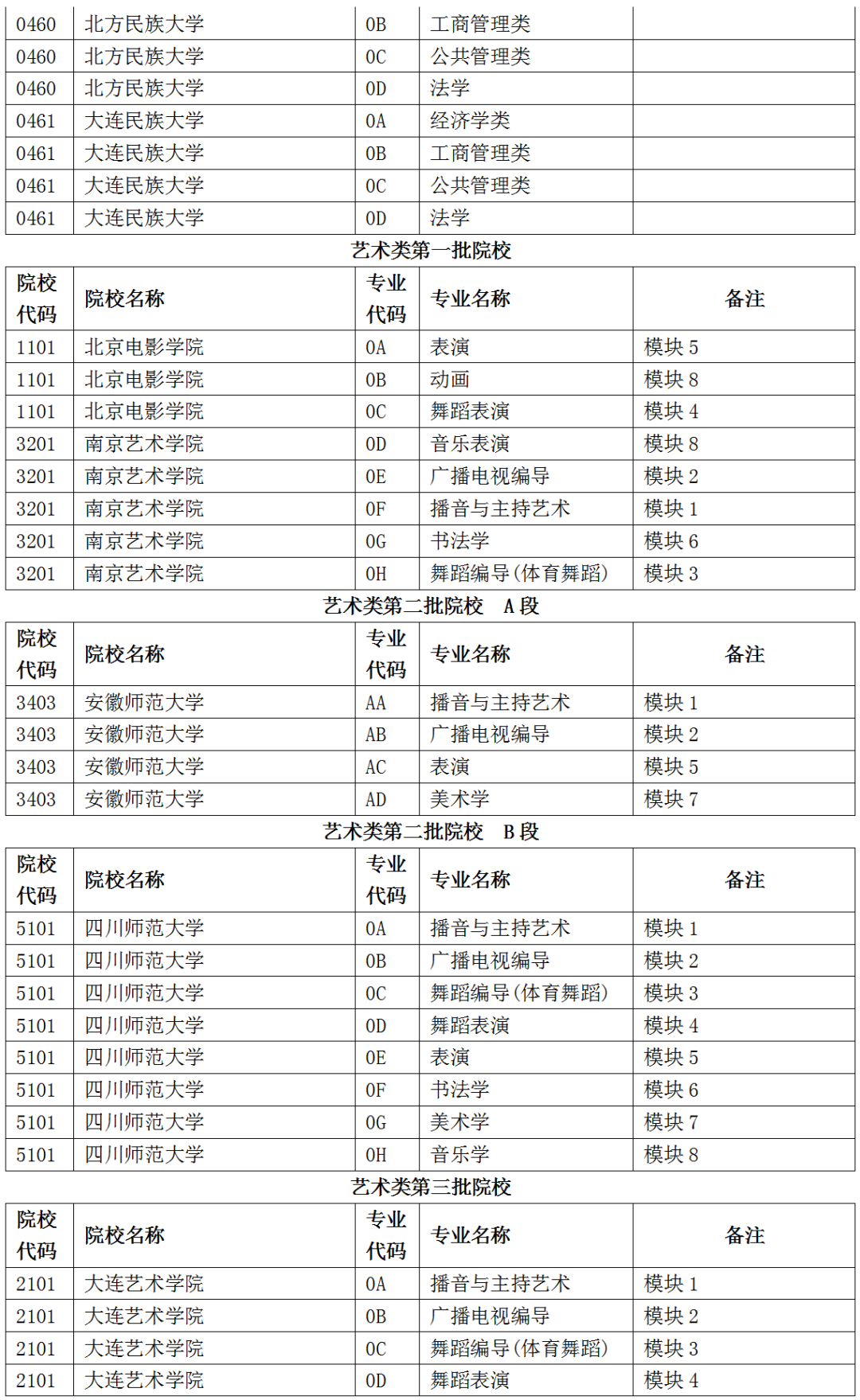 说明:以下院校及专业信息仅供志愿填报模拟演练填报使用,正式的院校及专业信息以《报考指导》为准。