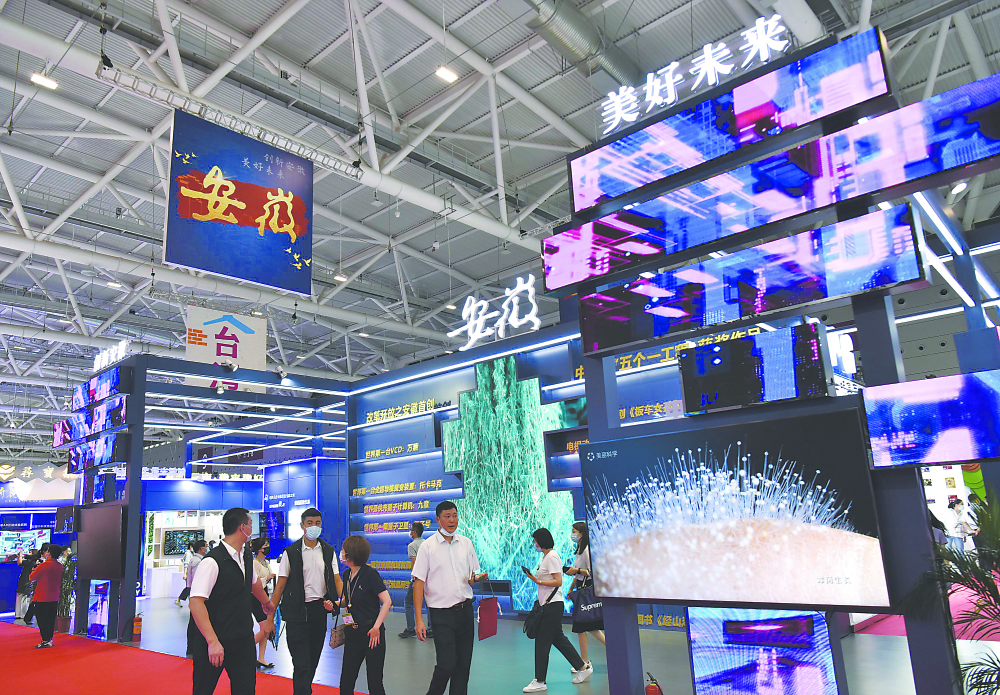 9月23日,深圳会展中心9号馆,以“创新安徽 美好未来”为主题的安徽展区亮相第十七届中国 (深圳)国际文化产业博览交易会。安徽展区面积1189平方米,序厅以建党百年为主线,“革命红”和“科技蓝”为主基调,展示了安徽省人民在党的领导下走过的非凡奋斗历程和文化改革创新成就。子展厅突出“文化+”“互联网+”,集中展示徽州风光、戏曲文化、文化旅游特色小镇等文旅融合新亮点,以及文房四宝、徽州三雕、铁画铜艺、剪纸柳编等特色工艺美术精品和非遗传承创新作品。