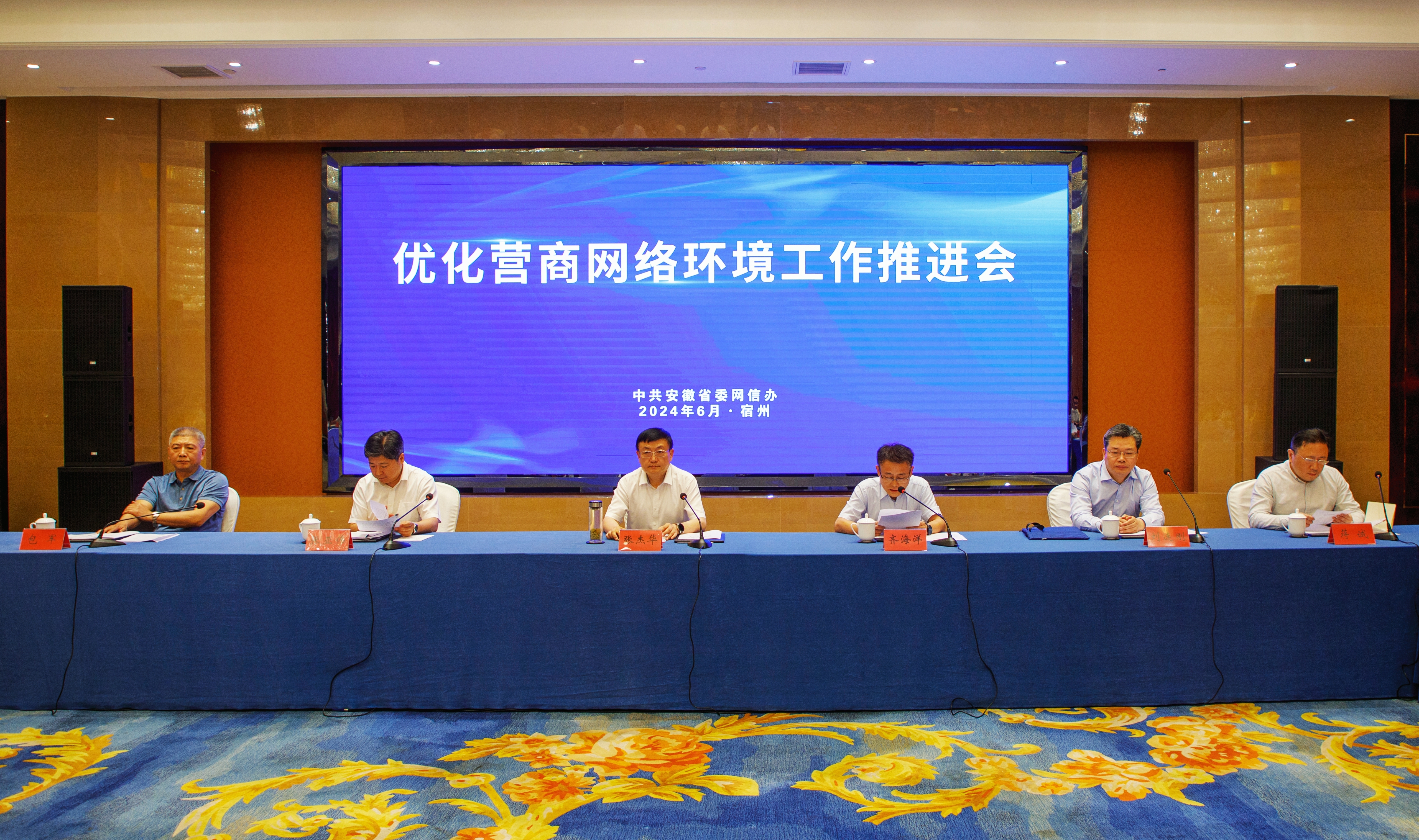 6月12日,省委网信办在宿州召开优化营商网络环境工作推进会,深入学习贯彻习近平总书记关于优化营商环境的重要论述,贯彻落实省委和中央网信办安排部署,总结工作,分析形势,明确任务,进一步推动优化营商网络环境工作再上新台阶。省委宣传部副部长、省委网信办主任张杰华,省政府办公厅副主任张亚伟,省委金融办副主任刘连刚,省工信厅二级巡视员包军,省证监局党委委员、副局长蒋诚出席推进会并讲话,省委网信办副主任齐海洋主持会议。