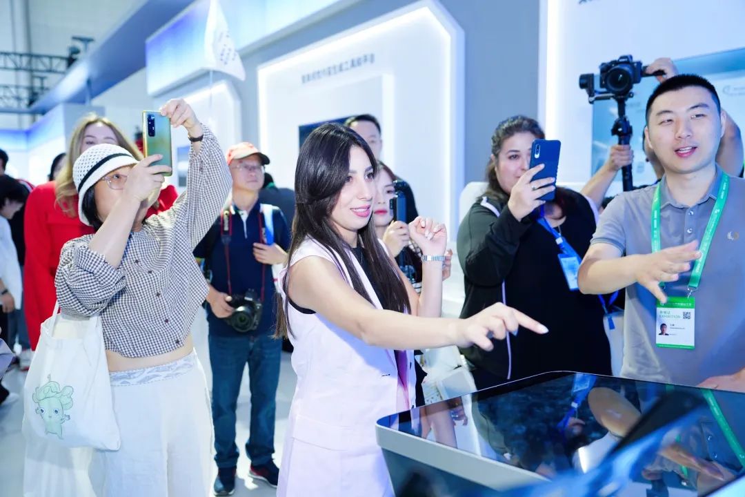 外国网红博主打卡“潮音”云集的2024世界制造业大会。高迈 摄
