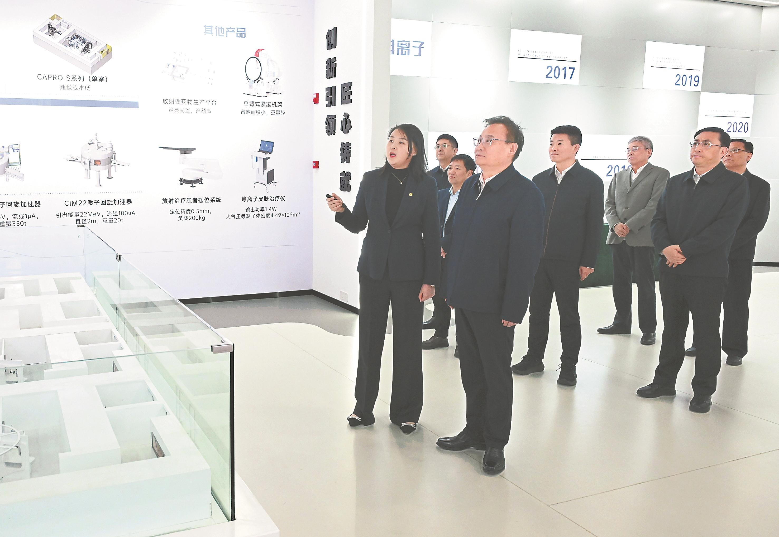 11月18日下午,省委书记梁言顺在合肥中科离子医学技术装备有限公司调研。本报记者 杨 竹 许 昊 摄