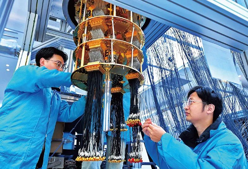 量子科技是新一轮科技革命和产业变革的前沿领域。近年来,安徽全力打造量子科技、产业“双高地”,已成为国内量子科技研究和产业化的重要基地。图为2024年11月25日,在本源量子计算科技(合肥)股份有限公司实验室内,技术人员正在对量子计算机进行测试。安徽日报社供图 程兆/摄