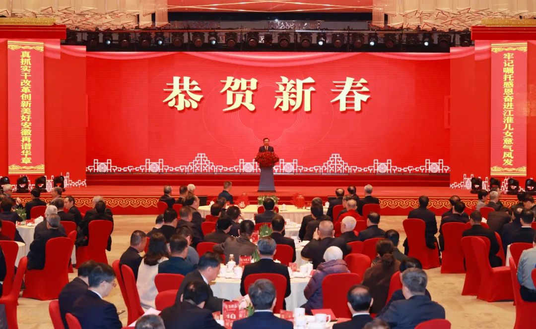 团拜会现场欢声笑语、暖意融融。省暨合肥市党政军负责同志,其他省军级领导同志,省级老同志、正军职以上离退休干部,在皖全国人大、住皖全国政协专委会负责同志,省直各单位、在肥部分高校、省属国有企业、在肥中央驻皖单位主要负责同志,省各民主党派、工商联、人民团体主要负责同志和无党派人士代表,在肥各界人士和先进模范代表欢聚一堂,互致祝福。