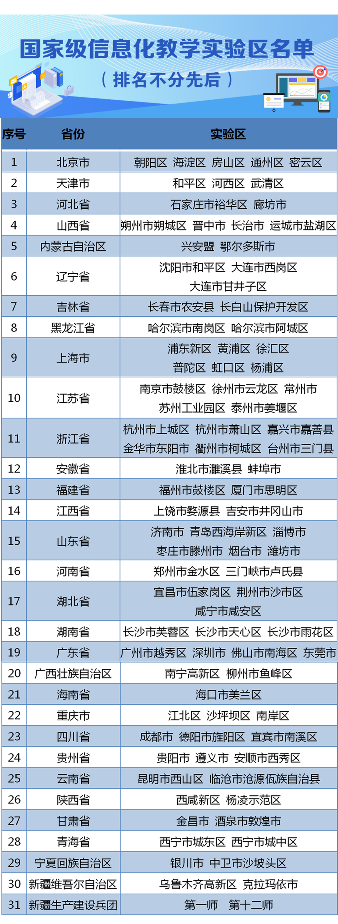 教育部公布了“国家级信息化教学实验区”名单,上海的浦东、黄浦、徐汇、普陀、虹口、杨浦共6个区入选。完整名单详见下文↓