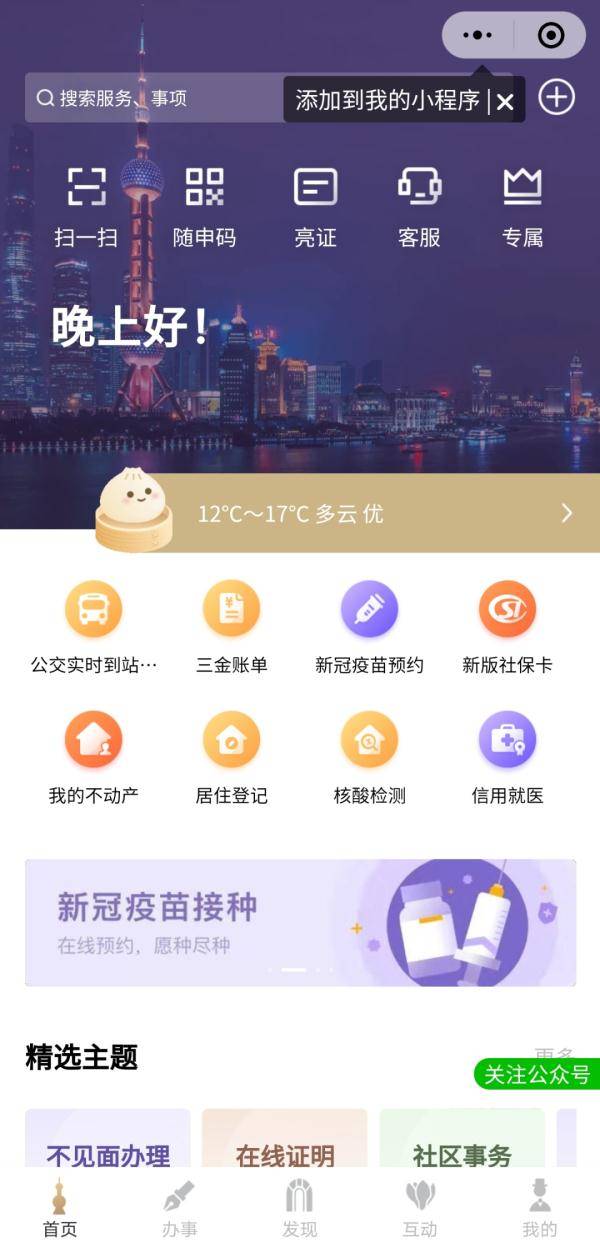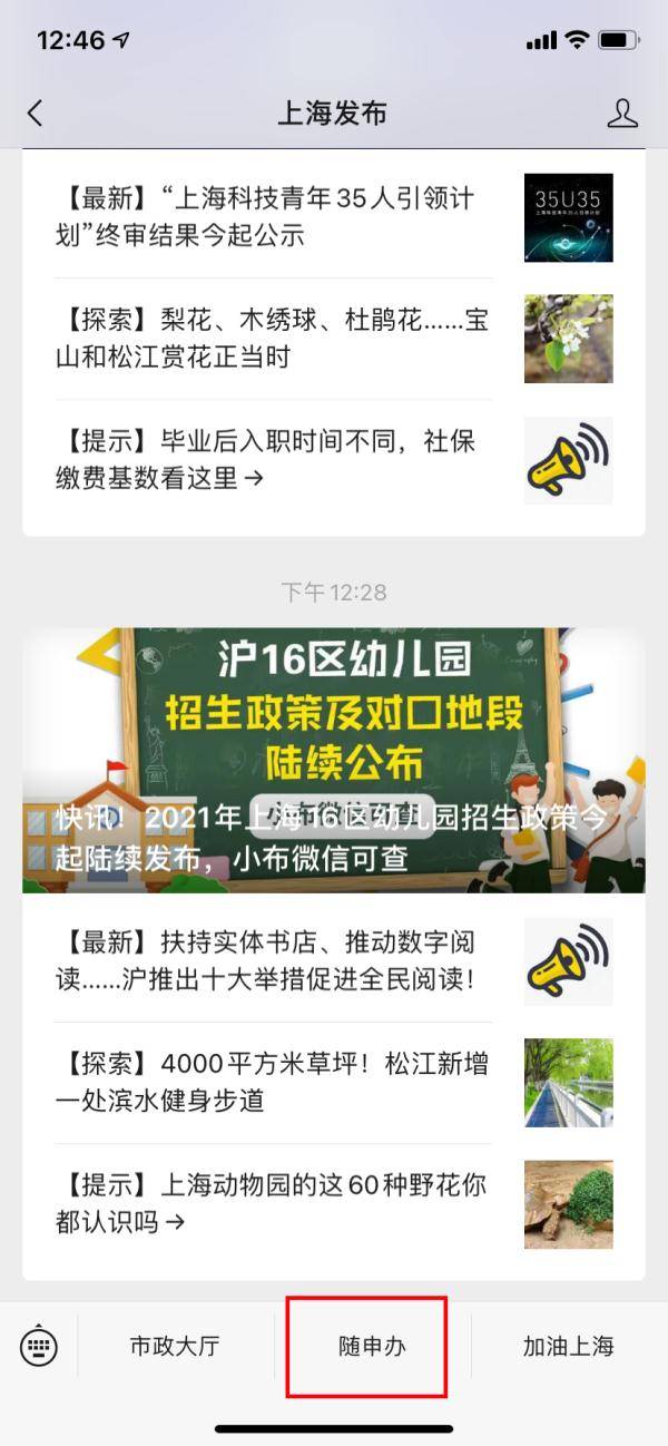 进入上海发布微信,选择下方菜单中的“随申办”选项,进入随申办小程序。