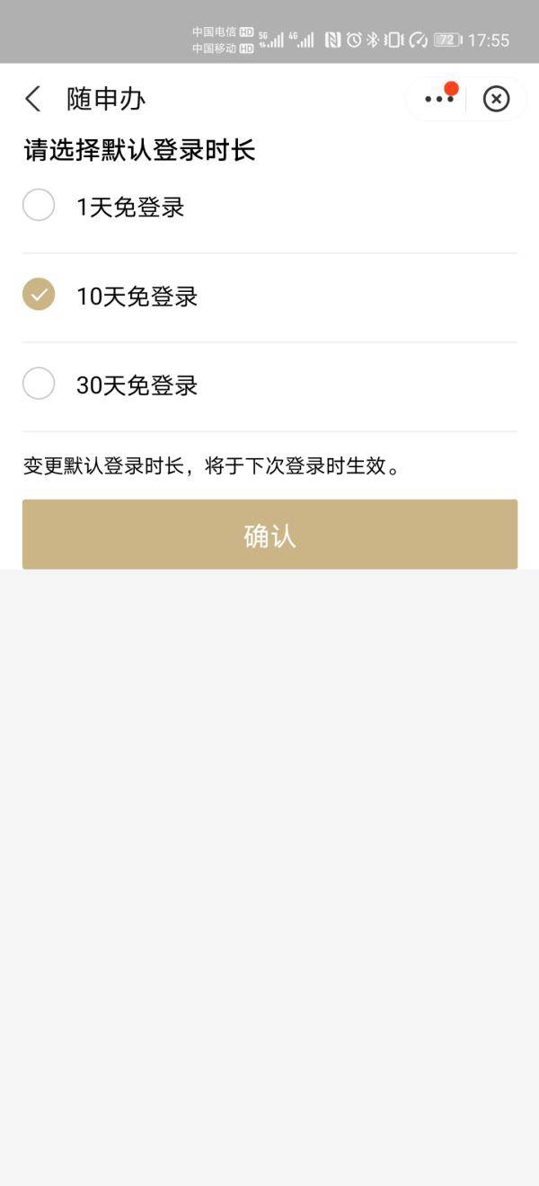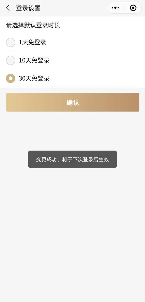 前往“我的”-“设置”-“登录管理”来设置默认登录时长,有1天、10天、30天三种设置供选择。超过免登录时间,则需要用户重新登录。