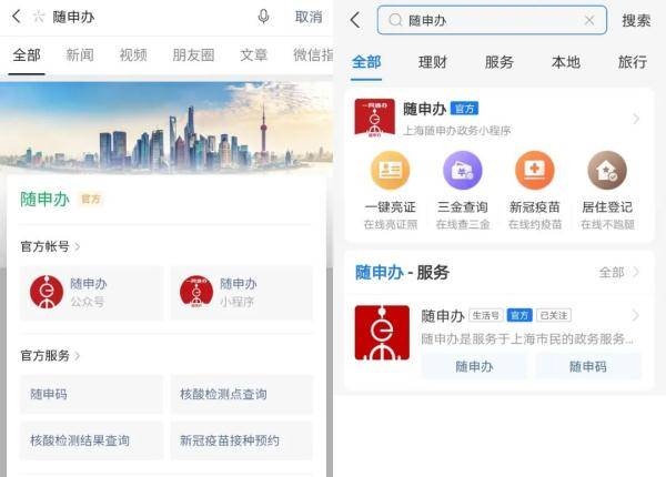 “随申办”微信小程序(左)、”随申办“支付宝小程序(右)