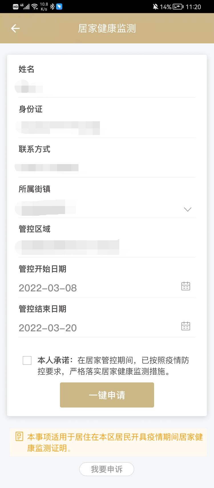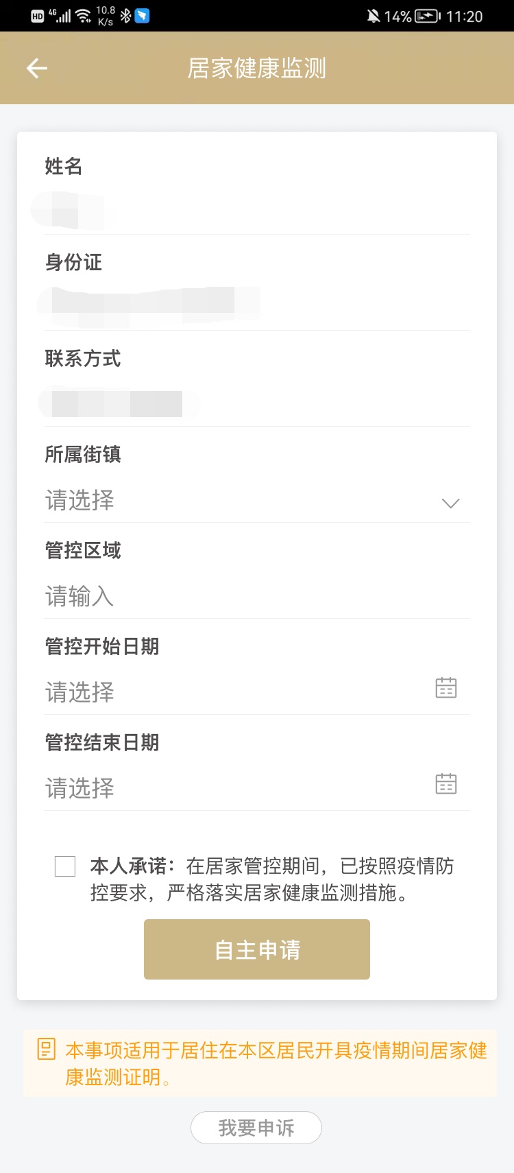 根据防疫工作要求临时排查的范围和区域,部分街道的居民也可选择所属街镇后,完成居住区域(地址或小区名称)等相关信息填报后点击“自主申请”,审核通过也可在线获取《居家健康监测证明》。