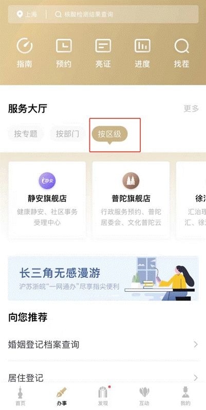 •使用“随申办”APP,还可以点击“按区级”,选择对应区,直达各区旗舰店