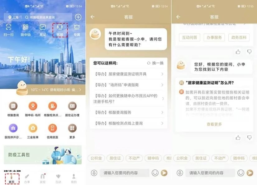 打开 “随申办”APP、“随申办”微信小程序、“随申办”支付宝小程序,首页点击“客服”,输入问题,没准智能客服—小申就能帮您解决难题。