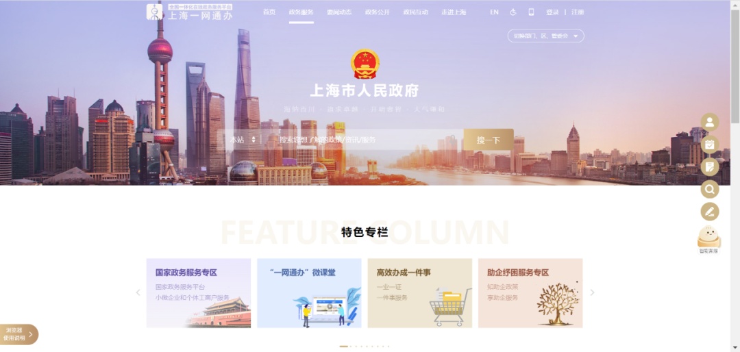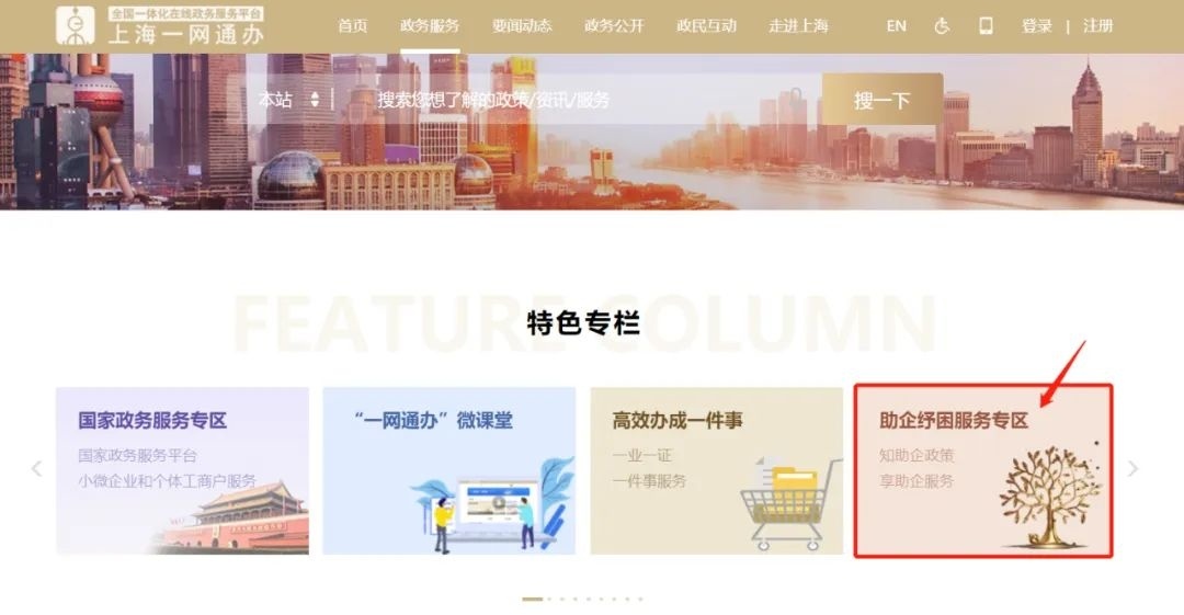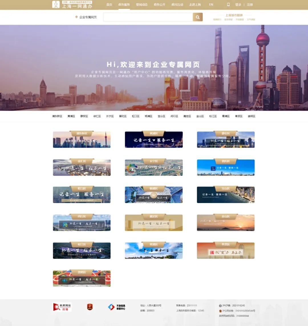 方式二:“一网通办”各区主页服务专栏中“企业专属网页”入口