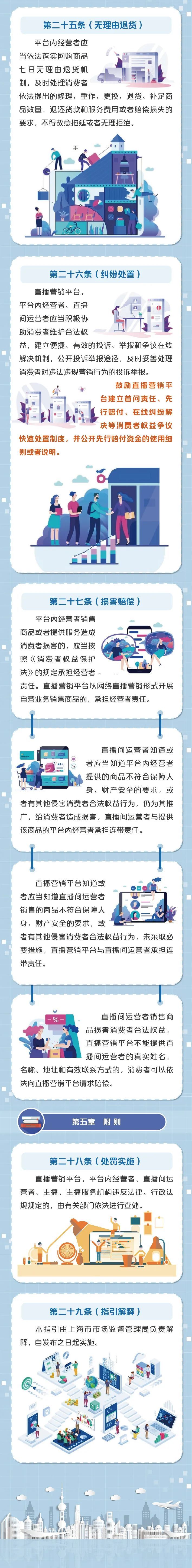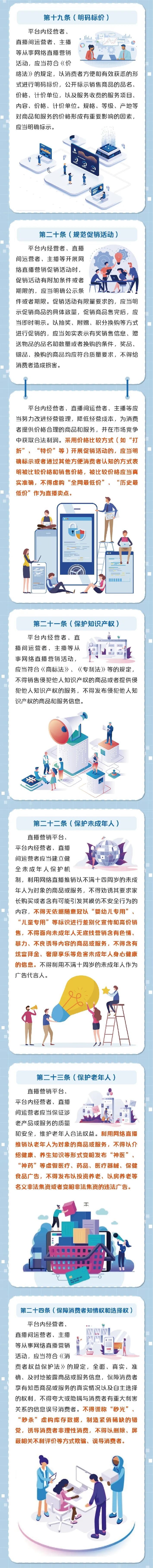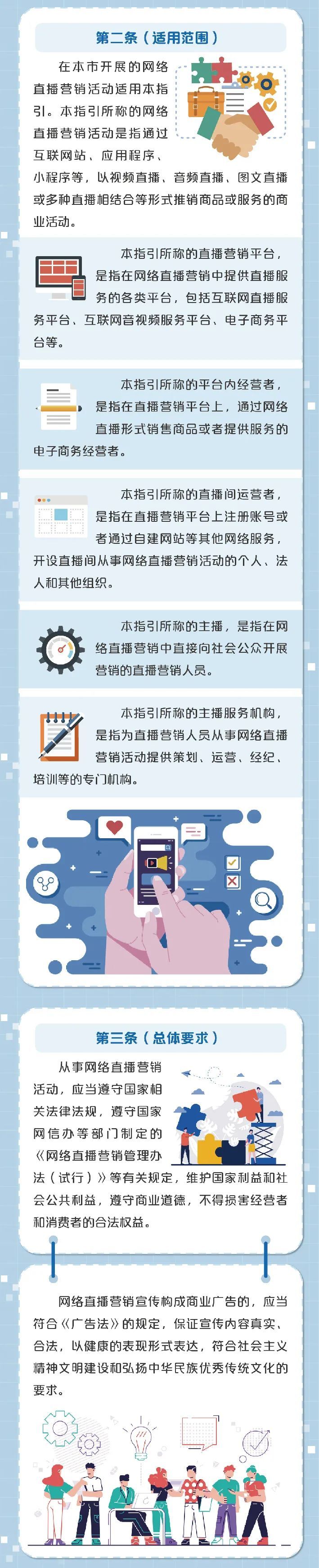 近日,上海市市场监管局出台了《上海市网络直播营销活动合规指引》。《指引》适用于在上海市通过互联网站、应用程序、小程序等,以视频直播,音频直播,图文直播或多种直播相结合等形式推销商品或服务的商业活动。明确了不得谎称“秒光”,“秒杀”虚构库存数据,制造紧俏稀缺的错觉,诱导消费者非理性消费;不得以删除,屏蔽相关不利评价等方式欺骗,误导消费者;采用价格比较方式开展促销活动的,被比较价格应当真实准确,不得虚构“全网最低价”、“历史最低价”作为直播卖点。详见↓