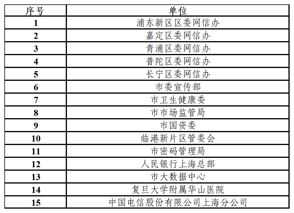 表1 2023年度全市网络安全工作先进单位