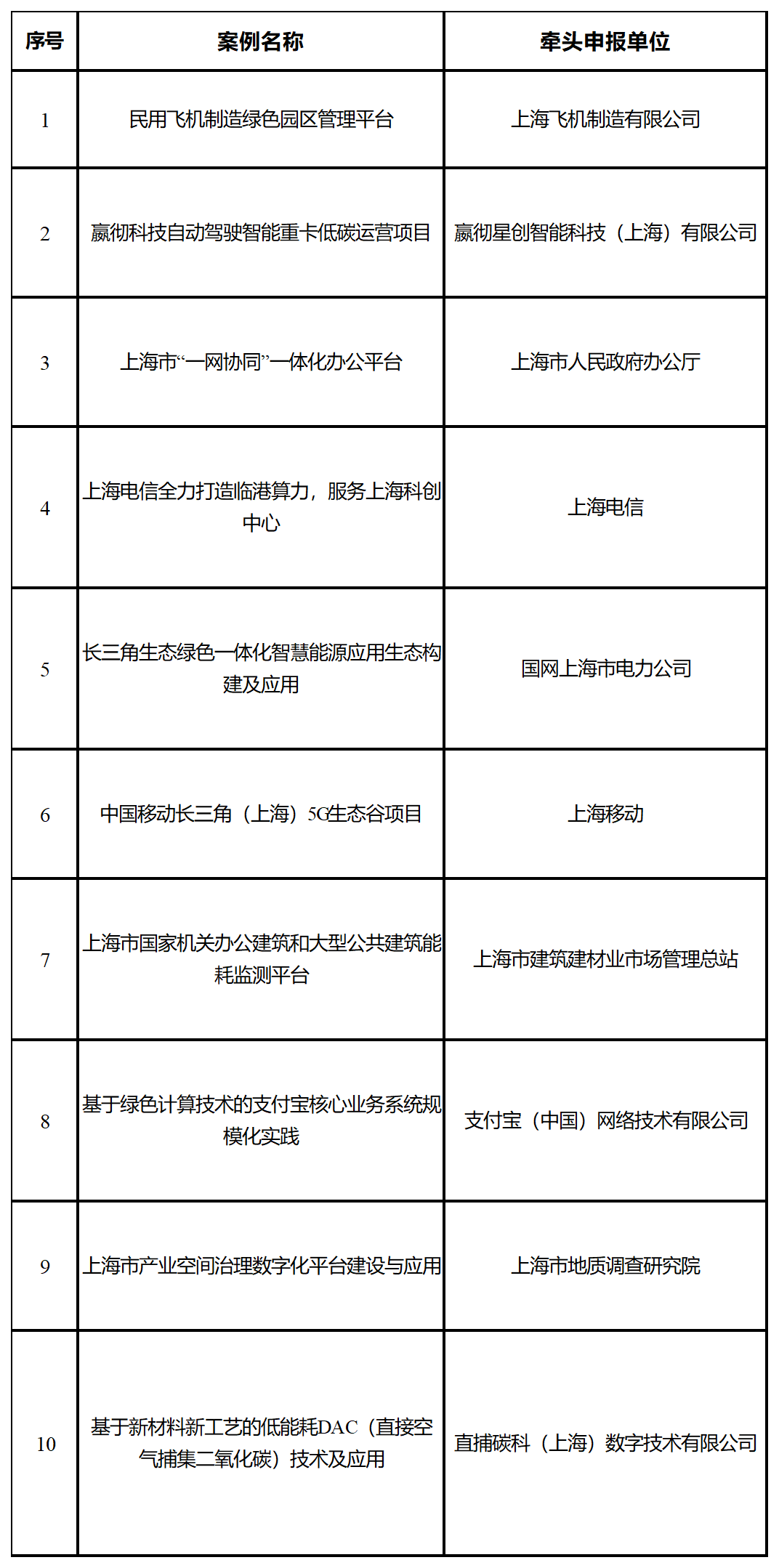 2023年长三角数字化绿色化协同转型发展典型案例上海市入选名单