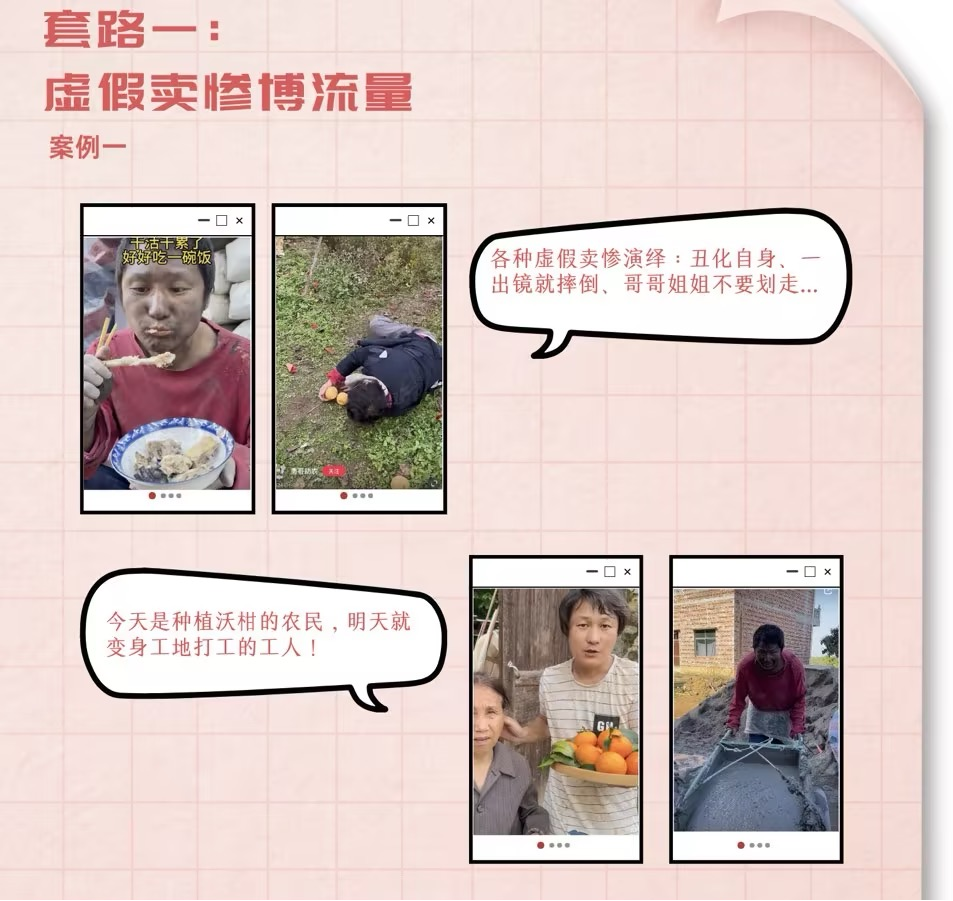 流量套路深,“冲浪”需谨慎。从本期开始,上海市委网信办将陆续曝光虚假卖惨、炫富拜金、编造“小作文”、扮丑猎奇、标题封面党、低俗擦边、贩卖焦虑、煽动群体矛盾等8类无底线博流量“自媒体”的典型套路和案例。