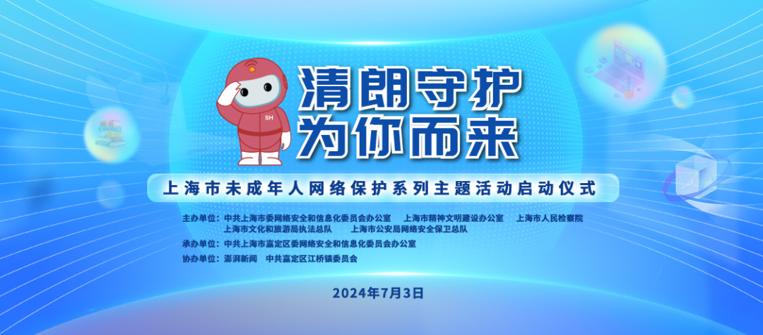 活动当天正式启动的“清朗守护 为你而来”未成年人网络环境整治专项行动是“清朗浦江·2024”五大专项行动之一。专项行动将持续2个月,覆盖暑期,进一步督促属地网络社交、网络音视频、网络直播、网络文学等未成年人喜闻乐见的网络平台加强信息内容治理。