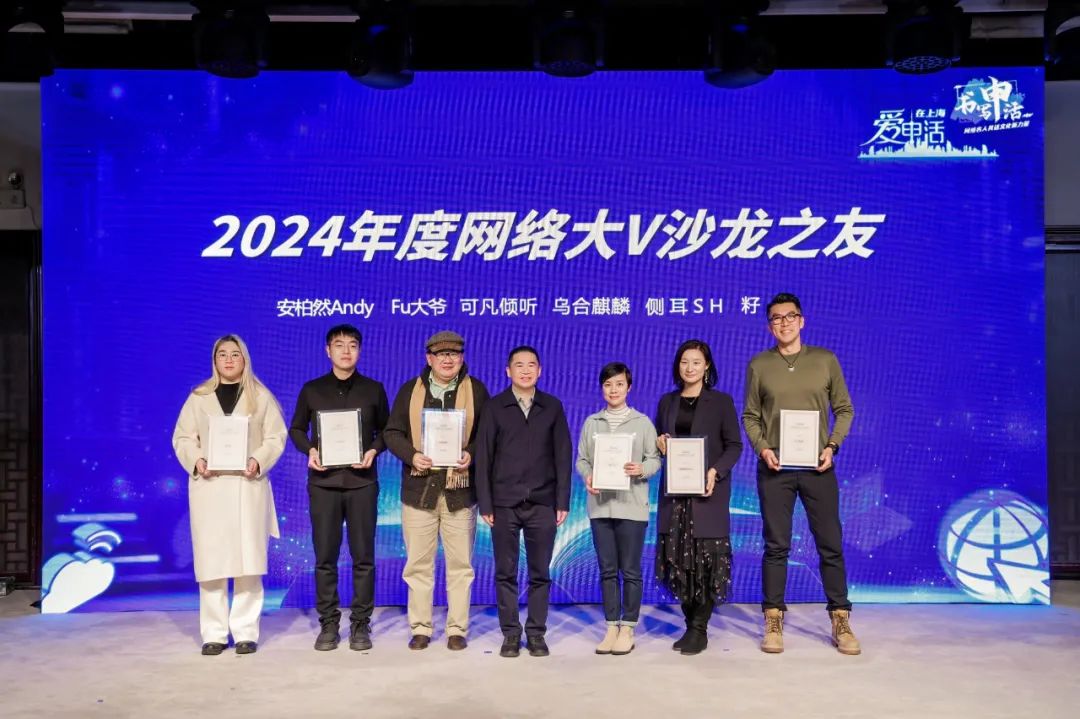 为感谢多年来网络名人大V们对上海的积极贡献和智慧建言,上海市委网信办首次颁发年度“大V沙龙之友”证书。2024年度获得荣誉的是:侧耳SH、乌合麒麟、Fu大爷、可凡倾听、安柏然Andy、籽岷。