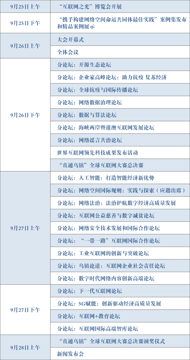 2021年世界互联网大会乌镇峰会日程发布