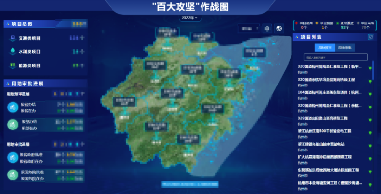 省域空间治理数字化平台正式上线,浙江用地项目首次在省级部门实现“审批等项目”。今年6月30日,全省数字化改革推进会传来这一好消息。7月11日,记者在省自然资源厅见证了这一新突破的现实场景:2022年全省百大项目用地审批“作战图”上,大部分项目进度在“省级审查”一栏是绿色字体的“已完成”。