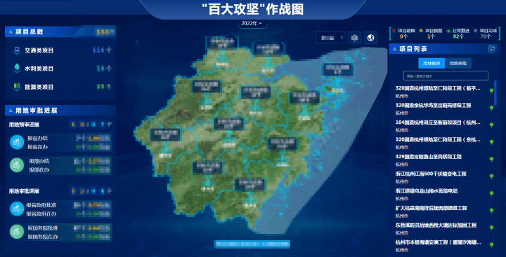 近日,记者在浙江省自然资源厅采访时发现:2022年全省百大项目用地审批“作战图”上,大部分项目进度在“省级审查”一栏是绿色字体的“已完成”。