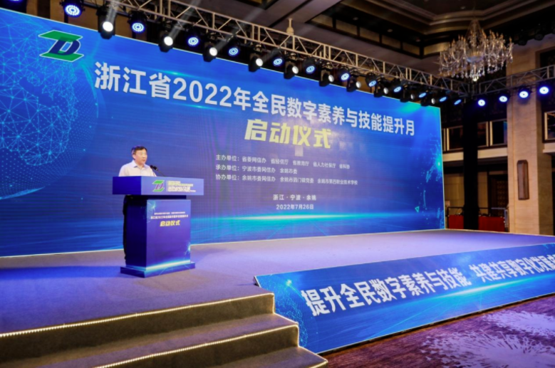 7月26日上午,浙江省2022年全民数字素养与技能提升月(以下简称“提升月”)在宁波余姚正式启动。