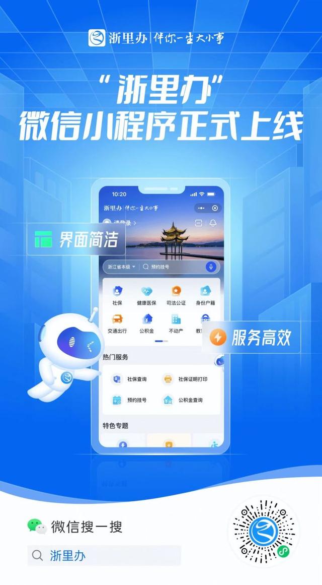 “浙里办”家族来了新成员!界面简洁、服务高效的轻量级“浙里办”微信小程序已正式上线,这意味着“浙里办”已实现APP、支付宝、微信等移动端全渠道覆盖。