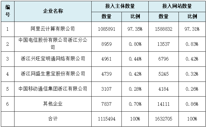 截至10月底,全省接入服务企业共128家,接入主体数量111.5万个,接入网站数量163.3万个(位居全国第一)。全省备案网站数量28.5万个,其中非经营性网站有28.33万个,经营性网站有1350个,分别占比99.53%和0.47%。
