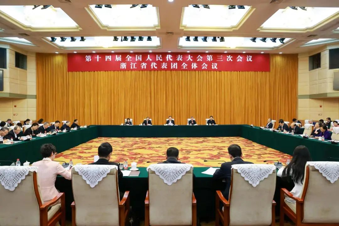 王浩代表说,全国人大常委会工作报告通篇贯彻习近平新时代中国特色社会主义思想,总结工作全面客观,部署任务务实有力,政治站位高、服务大局实,是一个彰显制度优势、体现履职为民情怀、弘扬法治精神的好报告,我完全赞同。过去一年,在以习近平同志为核心的党中央坚强领导下,全国人大常委会以坚定拥护“两个确立”、坚决做到“两个维护”的政治自觉,紧紧围绕党和国家工作大局,全面履行宪法法律赋予的各项职责,稳中求进推动人大工作高质量发展,在进一步全面深化改革、推进中国式现代化的新征程上展现了人大担当、彰显了人大作为。我们将深学笃行习近平总书记关于坚持和完善人民代表大会制度的重要思想,深入贯彻工作报告精神,坚持高站位、实干事、见真功相统一,大力弘扬“六干”作风,服务保障全国人大代表履行职责,以浙江的生动实践彰显人民代表大会制度的显著优越性和旺盛生命力。