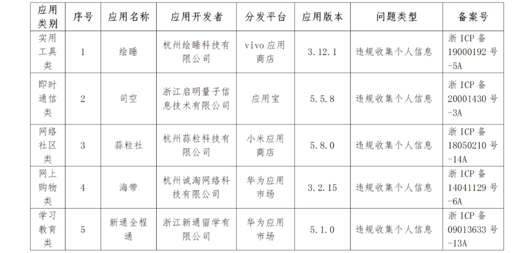浙江省通信管理局高度重视用户权益保护工作,依据《个人信息保护法》《网络安全法》《电信条例》《电信和互联网用户个人信息保护规定》等法律法规,持续开展APP侵害用户权益治理工作。近期,我局组织第三方检测机构对群众关注的实用工具、即时通信、网络社区等类型APP进行检查,书面要求违规APP开发运营者限期整改。