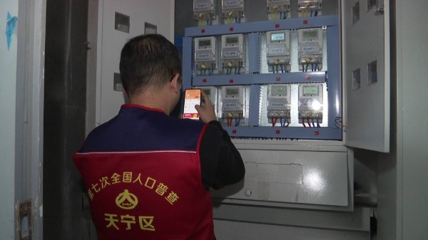 10月26日,江苏省常州市天宁街道青果巷社区的人口普查指导员赵波和普查员薛莲,来到青果南苑一居民楼开展入户摸底。在八楼遇到一户无人应答,赵波随即找到该户的电表,拿出手机登录网上国网APP,使用“e普查”程序扫描电表二维码后显示为红色码,赵波放心地将该登记为空置户。