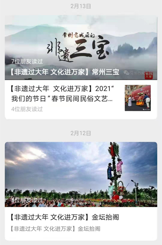 非遗过大年板块通过组织拍摄常州三宝、常州萝卜干腌制技艺、常州芝麻糖制作技艺、常州梨膏糖制作技艺等15个非遗视频,让市民在线欣赏非遗绝技。