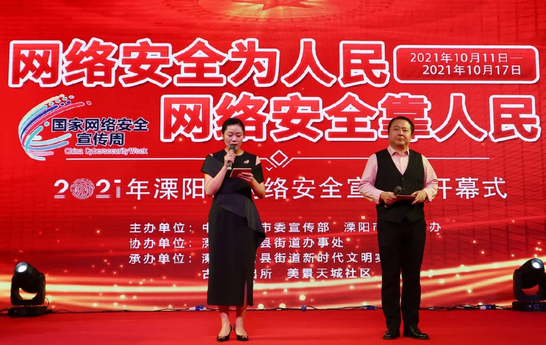 10月11日晚,由市委宣传部、市委网信办主办,市保密局、古县街道办事处协办,古县街道新时代文明实践所、古县派出所、美景天城社区承办的以“网络安全为人民、网络安全靠人民”为主题的2021年溧阳市网络安全宣传周开幕式在古县街道天目星城法治文化广场举行。