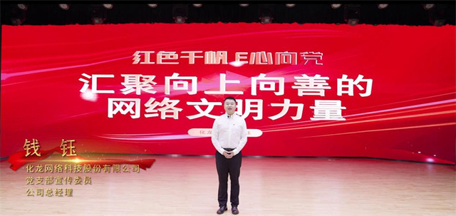 (“红色千帆”区域网站党建联盟发起单位——化龙网络科技有限公司总经理、党支部宣传委员钱钰交流分享)