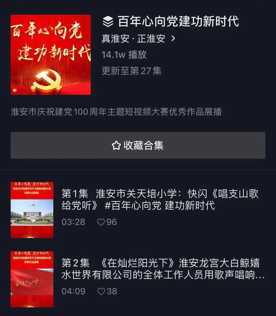 作品征集完成后,淮安市广播电视台(集团)第一时间在“无线淮安”移动客户端开设“淮安市庆祝建党100周年主题短视频大赛优秀作品展播区”。截至7月15日,已通过“真淮安·正淮安”抖音政务号展播作品30件;“无线淮安”微信公众号展播作品11件;“无线淮安”移动客户端展播作品40件。
