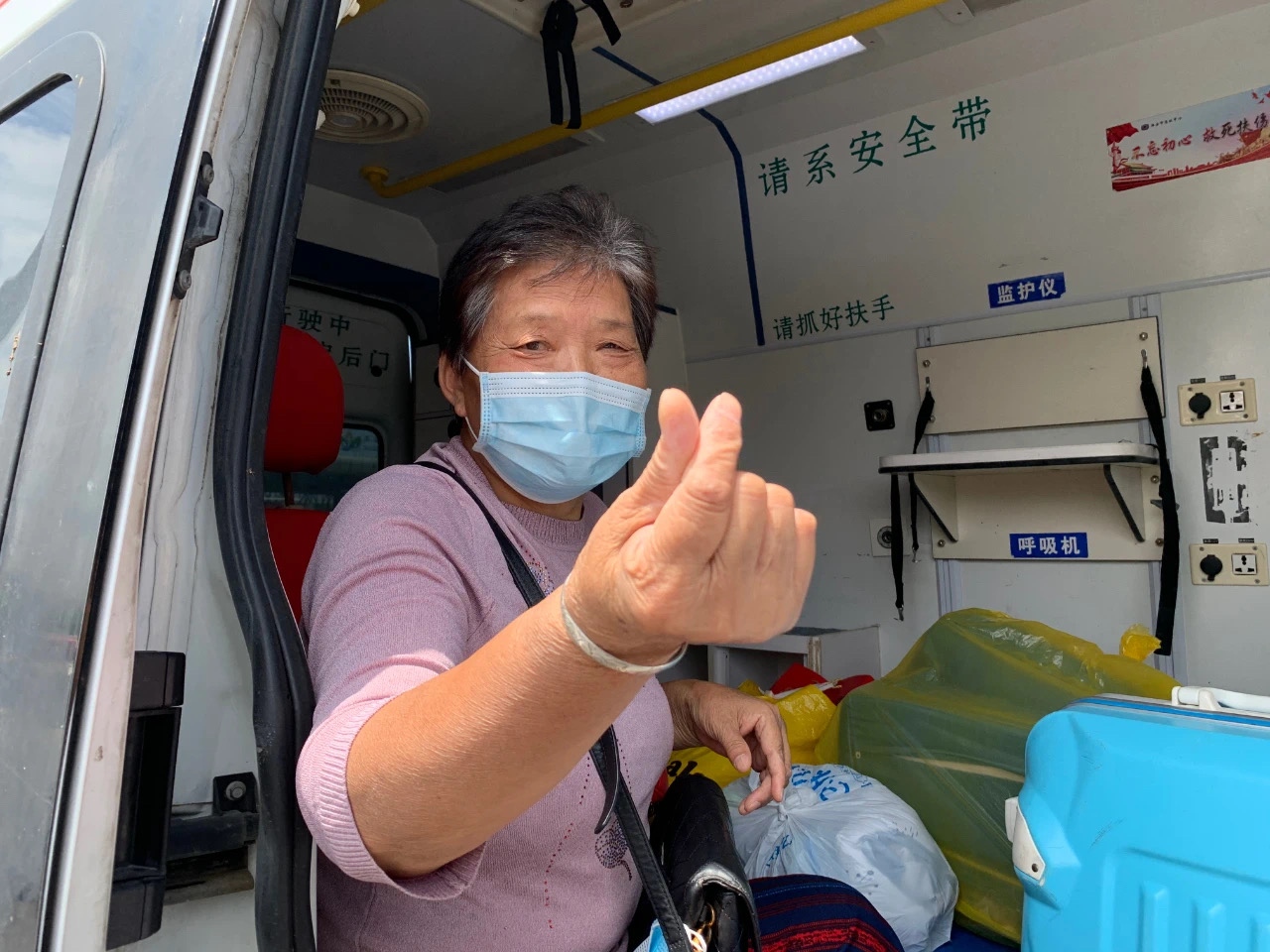 “姑姑,我们准备出发了。”9点40分,侄女给顾女士发送了一条信息。为确保患者行程中的安全,主治医师李建伟也上车随行。车上还有一名同一天出院的金湖县患者王益国,他也将与孙后梅一起踏上这次回家之行。