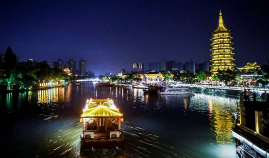 入夜后的夏日暖风打在身上已没有白天的燥热,淮安清江浦景区里运河的两岸流光溢彩,游人如织。这一头,一场场令人叫绝的歌唱表演吸引了过往散步的市民和游客,里三层外三层将戏台围个水泄不通;那一边,名胜古刹的倒影随着运河的水波变化莫测,三五成群的游客正拿着手机在这迷人夜色中留下美好回忆。8月14日,“以河为媒——沿着大运河看中国”媒体采访团来到淮安,感受运河之都在时代变迁中散发的无穷魅力。