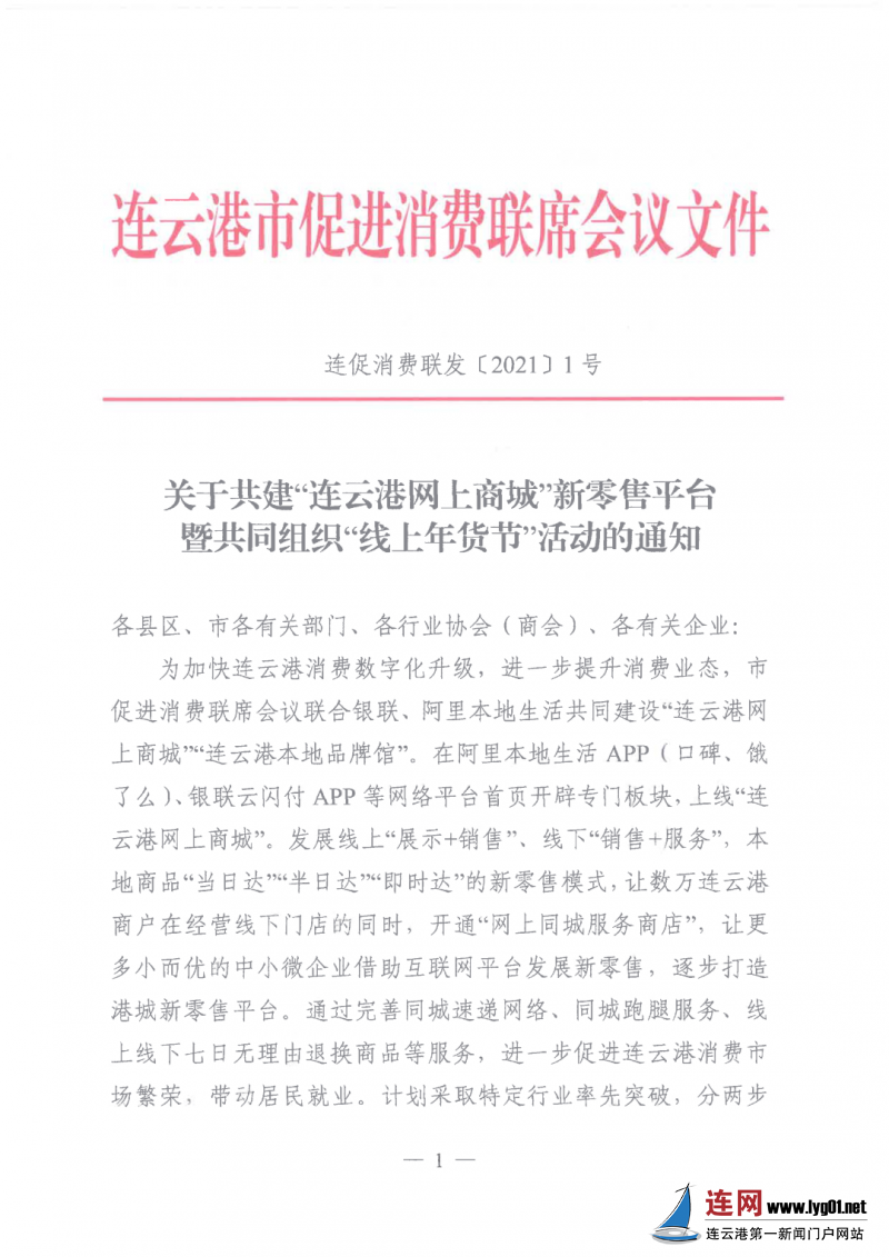 日前,笔者从连云港市发改委获悉,为加快连云港消费数字化升级,进一步提升消费业态,连云港市促进消费联席会议联合银联、阿里本地生活、518全球购、连农云商、屋托帮新社区等平台共同建设“连云港网上商城”、“连云港本地品牌馆”。连云港市发改委相关负责人介绍,希望通过这些平台的建设,完善同城速递网络、同城跑腿服务、线上线下七日无理由退换商品等服务,进一步促进连云港消费市场繁荣,带动居民就业。