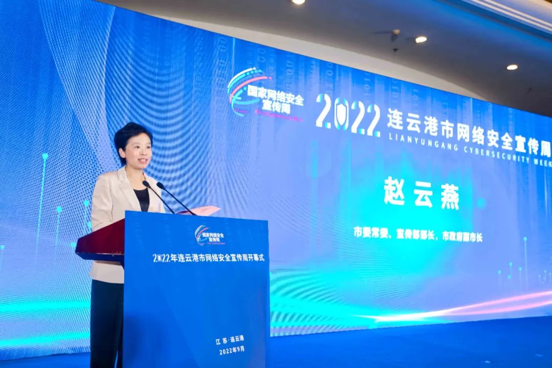 9月6日下午,2022年连云港市网络安全宣传周开幕。市委常委、宣传部部长,市政府副市长、市委网信委副主任赵云燕参加开幕式并讲话。市委宣传部副部长、市委网信办主任李武、各主题日活动牵头部门及市人社局、海州区委网信委分管领导,各县区(功能板块)网信部门负责人等参加了开幕式。