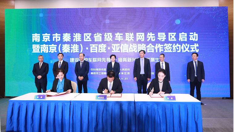 亚信集团董事长田溯宁,百度集团副总裁、智能驾驶事业群组总经理李震宇致辞表示,将把南京秦淮作为智能网联领域全国重点布局地域和区域总部,加大资源投入,从项目孵化创新、人才引进培育、市场运营推广、设立产业基金等角度致力打造具有全球影响力的智能网联产业及应用示范高地。此次进入南京,百度将与南京市、秦淮区在自动驾驶、车路协同、智能车联等领域展开深入合作,推进南京智能网联汽车产业高质量发展。亚信集团也将在秦淮成立全资子公司,负责未来南京相关智能网联汽车产业园的运营和招商引资。